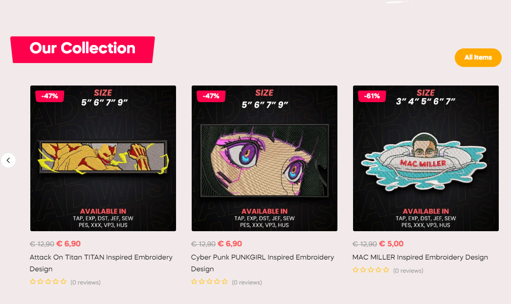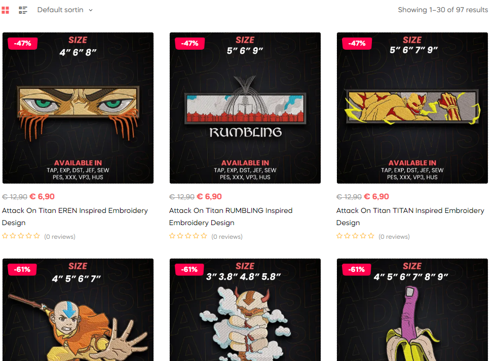 Website focused on anime products, both embroidered t-shirts and digital files.I am the owner of the website and I work part-time in this sector of embroidered t-shirts and digital files for embroidery.